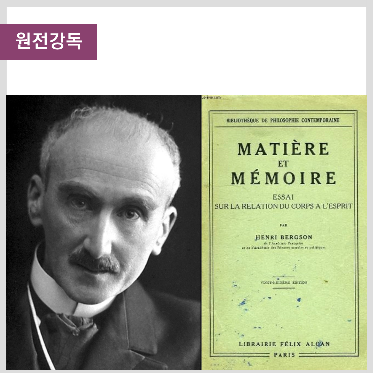 | 강좌소개 | 베르크손은 현대 철학의 시작점이다. 베르크손의 철학을 기점으로 공간과 다른 것으로서의 시간, 생명은 철학의 중심 문제가 되었으며, 이러한 그의 철학은 들뢰즈를 비롯한 많은 현대 철학자들에게 깊은 영향을 주었다. 본 강좌는 베르크손의 두 번째 주저인 물질과 기억(Matière et mémoire)을 원전 강독하는 시간이다. 이 책에 제시된 의식과 기억, 몸과 물질, 행동과 그것들의 관계에 대한 베르크손의 사상이 현대 철학과 인문학 전반에 지속적으로 영향을 미치면서, 여전히 생생하게 살아있다는 사실을 확인하는 시간이 될 것이다. 앞선 세 학기에 이어 네 번째 진행되는 강좌지만, 이전 강좌에 대한 수강이 필수적이지 않다. 강좌는 학생들의 원문 독해 능력 수준에 맞춰 진행되며, 철학 내용을 전달하고 이해하는 것이 강좌의 첫째 목적이지만, 수강생들의 독해 능력 향상도 또한 강좌의 목적이기도 하다. |