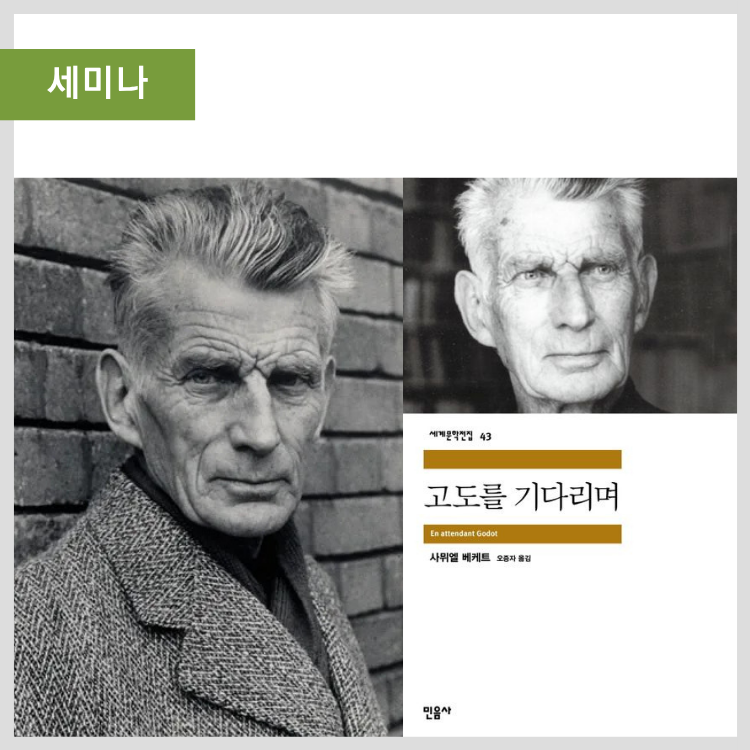 | 난이도 및 수강요건 | [난이도: 대학교 전공 수준 / 세미나] 본 강의는 대학교 전공 수준으로 기획했으나 베케트의 작품을 이미 접했거나 『고도를 기다리며』를 독서를 통해 심도 있게 학습하고자 한다면 누구나 수강할 수 있다. 그러나 세미나 형식으로 진행되는 만큼 수강생의 적극적인 참여가 필수적이며, 수강생 당 최소 1회의 발제를 요건으로 한다. 처음과 마지막 주차를 제외하고 한 회 당 30페이지 가량의 텍스트에 관해 논하며, 최종 수강 인원에 따라 발제하는 분량 및 횟수는 가감될 수 있다. 프랑스어 원전과 영어 번역본을 직접 독해하는 것이 아닌 한국어 번역본을 중심으로 이들 텍스트를 참고하는 것이기에, 해당 언어에 대한 지식은 필수적이지 않다. |