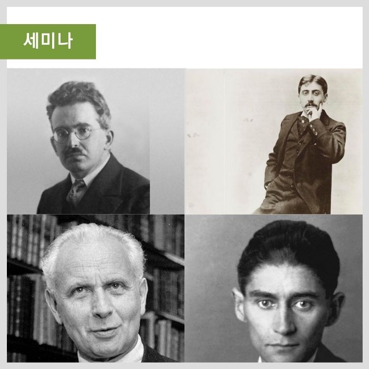 | 4주차 | 9월 27일(수) 2교시 (16:30-18:20) 카프카: 망각의 형상들 카프카의 문학 세계에는 망각이라는 모티프를 중심으로 다양한 형상의 스펙트럼이 펼쳐진다. 카프카의 작품에 동물이 유독 많이 등장하는 이유는 망각의 모티프와 관련이 있다. 카프카가 “동물들에게서 지칠줄 모르고 엿들으려고”(벤야민) 했던 것은 피조물로서 인간이 동물과 공유하고 있는 측면이다. 『가장의 근심』, 『선고』, 『굴』 등 카프카의 단편을 통해 이 측면을 구체적으로 살펴본다. |